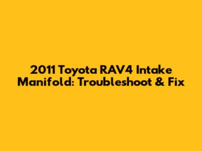 2011 Toyota RAV4 Intake Manifold: Troubleshoot & Fix