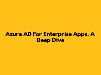 Azure AD For Enterprise Apps: A Deep Dive