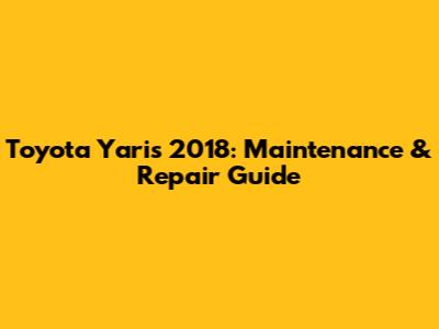 Toyota Yaris 2018: Maintenance & Repair Guide