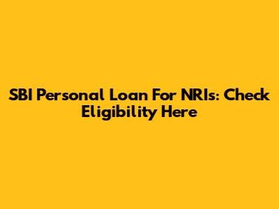 SBI Personal Loan For NRIs: Check Eligibility Here