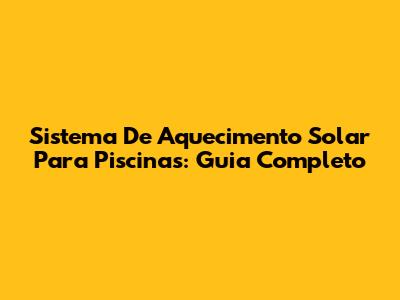 Sistema De Aquecimento Solar Para Piscinas: Guia Completo