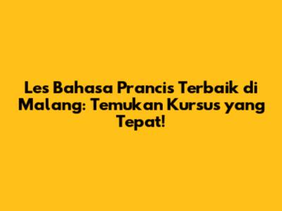 Ada beberapa lembaga kursus bahasa asing yang menawarkan program bahasa Prancis di Malang. Lembaga-lembaga ini biasanya punya kurikulum yang terstruktur, pengajar yang berkualitas, dan fasilitas yang memadai. Kalian bisa mencari informasi tentang lembaga-lembaga ini melalui internet, media sosial, atau bertanya kepada teman atau kenalan yang pernah mengikuti kursus di sana.