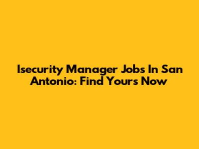 Isecurity Manager Jobs In San Antonio: Find Yours Now
