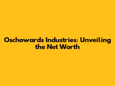 Understanding Oschowards Industries' net worth is important for several reasons: