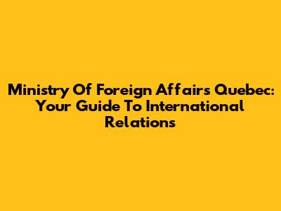 Ministry Of Foreign Affairs Quebec: Your Guide To International Relations