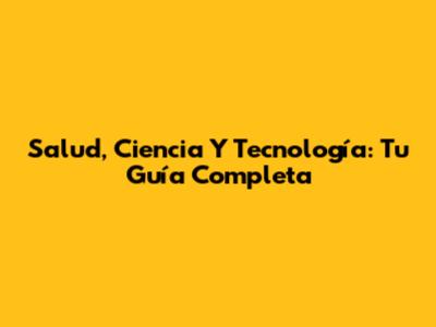 Salud, Ciencia Y Tecnología: Tu Guía Completa