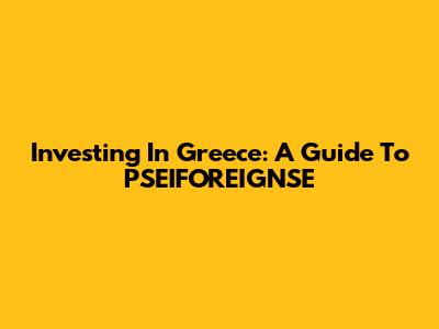 Investing In Greece: A Guide To PSEIFOREIGNSE