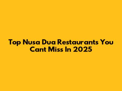 Top Nusa Dua Restaurants You Can't Miss In 2025